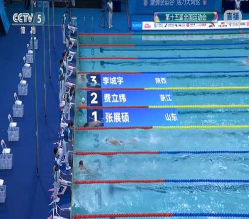 就在男子400米个人混合泳决赛举行前的十五运会男子1500米自由泳决赛,山东队张展硕以 14:52.73 刷新个人最好成绩夺冠。他在本届全运会表现出色,已斩获男子400米自由泳、200米自由泳、800米自由泳及男子4×200米自由泳接力共四枚金牌,并三次刷新全国青年纪录。